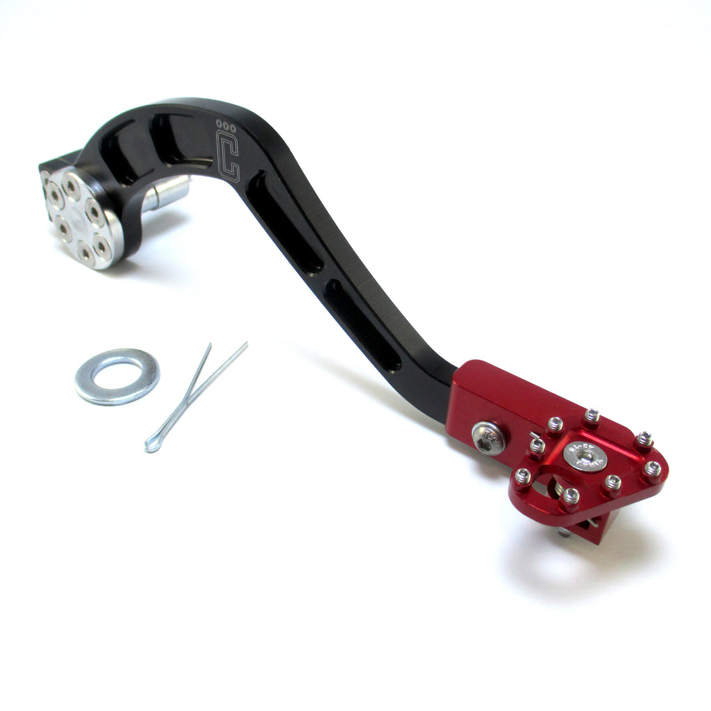 High performance brake pedal made by Corona Racing and specifically engineered for the CRF300F/250F models. Made of aerospace aluminum, hard anodized in colors, with a fully folding spring-loaded tip, and stainless-steel hardware throughout.