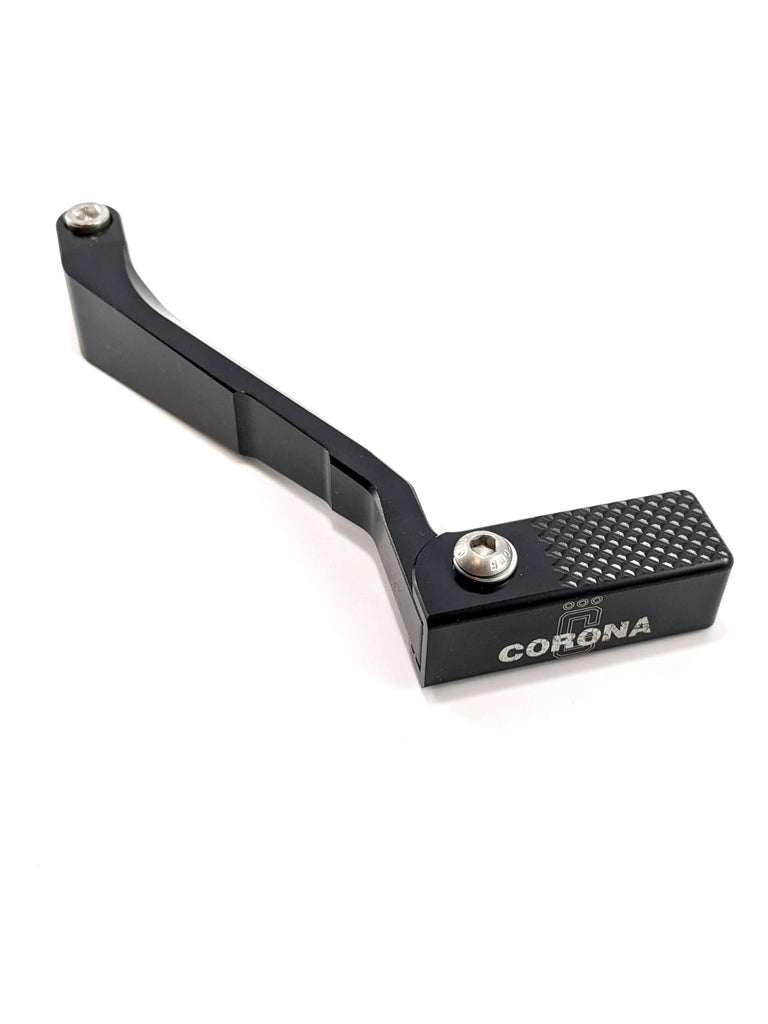 This product is super high quality, as always expected from Corona Racing. The shift lever body is milled from a solid block of billet aluminum and then color hard anodized. The folding shifter tip is also built from billet aluminum, knurled on the top and bottom for grip, and then hard anodized as well. All the hardware (spring, bolts, & washer) is made from stainless steel.